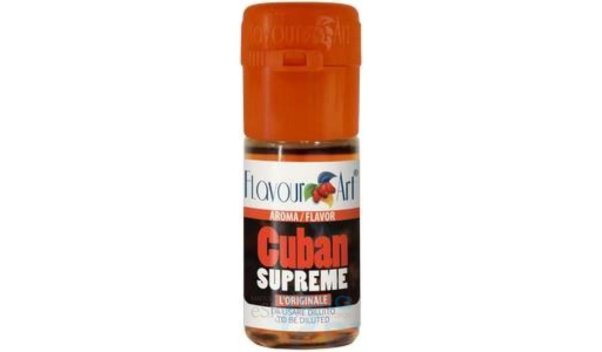Вкус кубинского табака от итальянской фабрики ароматизаторов FlavourArt — Cuban Supreme. Эта арома отличается заметной сладостью, а также содержит глубокие душистые тона. Рекомендуем попробовать! Концентрат вполне годится, для того чтобы смешиваяать в жидкость в чистом виде. Оптимальная дозировка при замешивании Cuban Supreme FA — 2-3%.